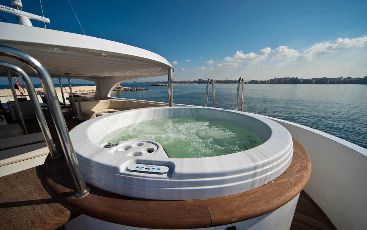 La cabine double/triple située sur le pont supérieur dispose d'une salle de bain privée, de la climatisation et d'équipements modernes.